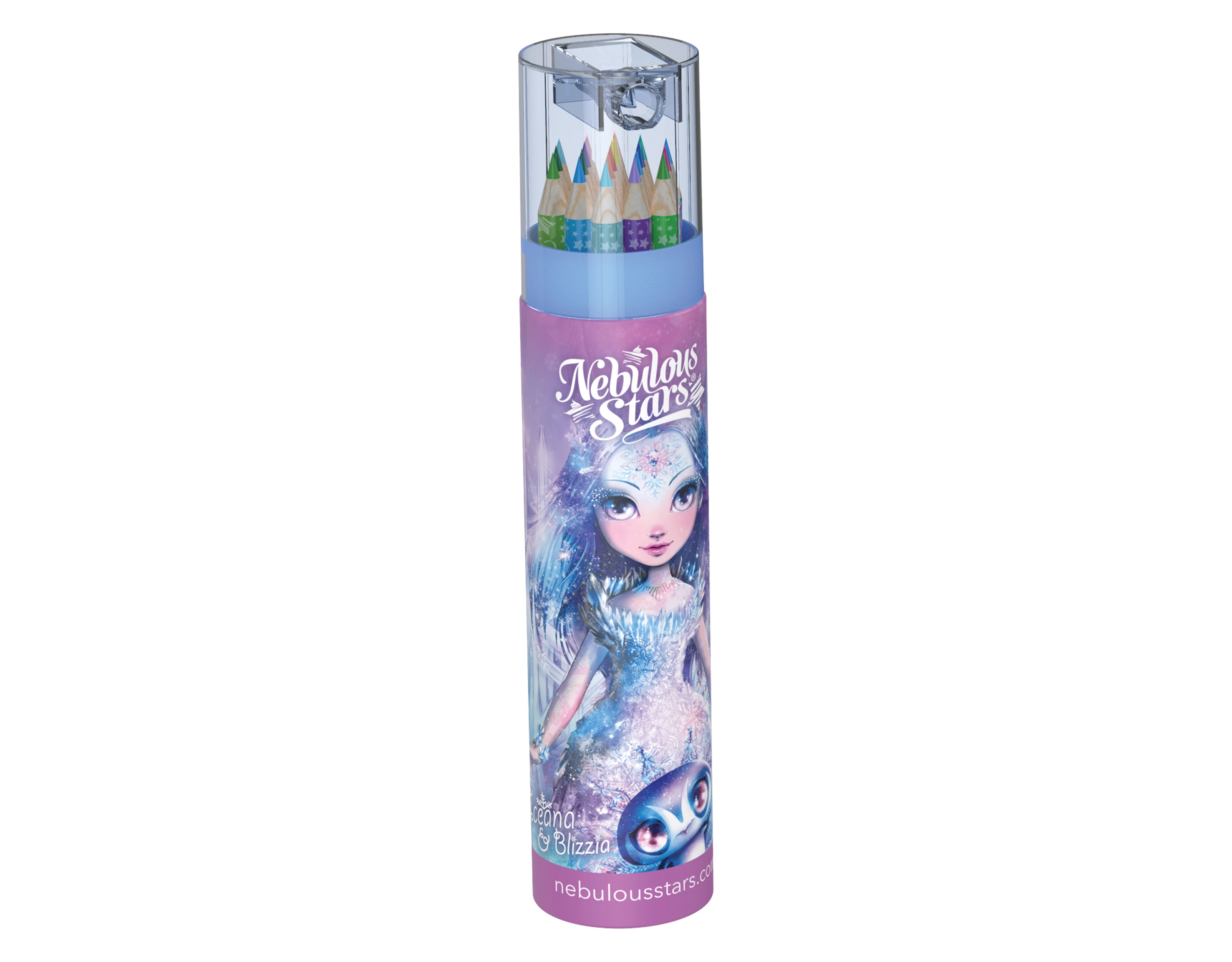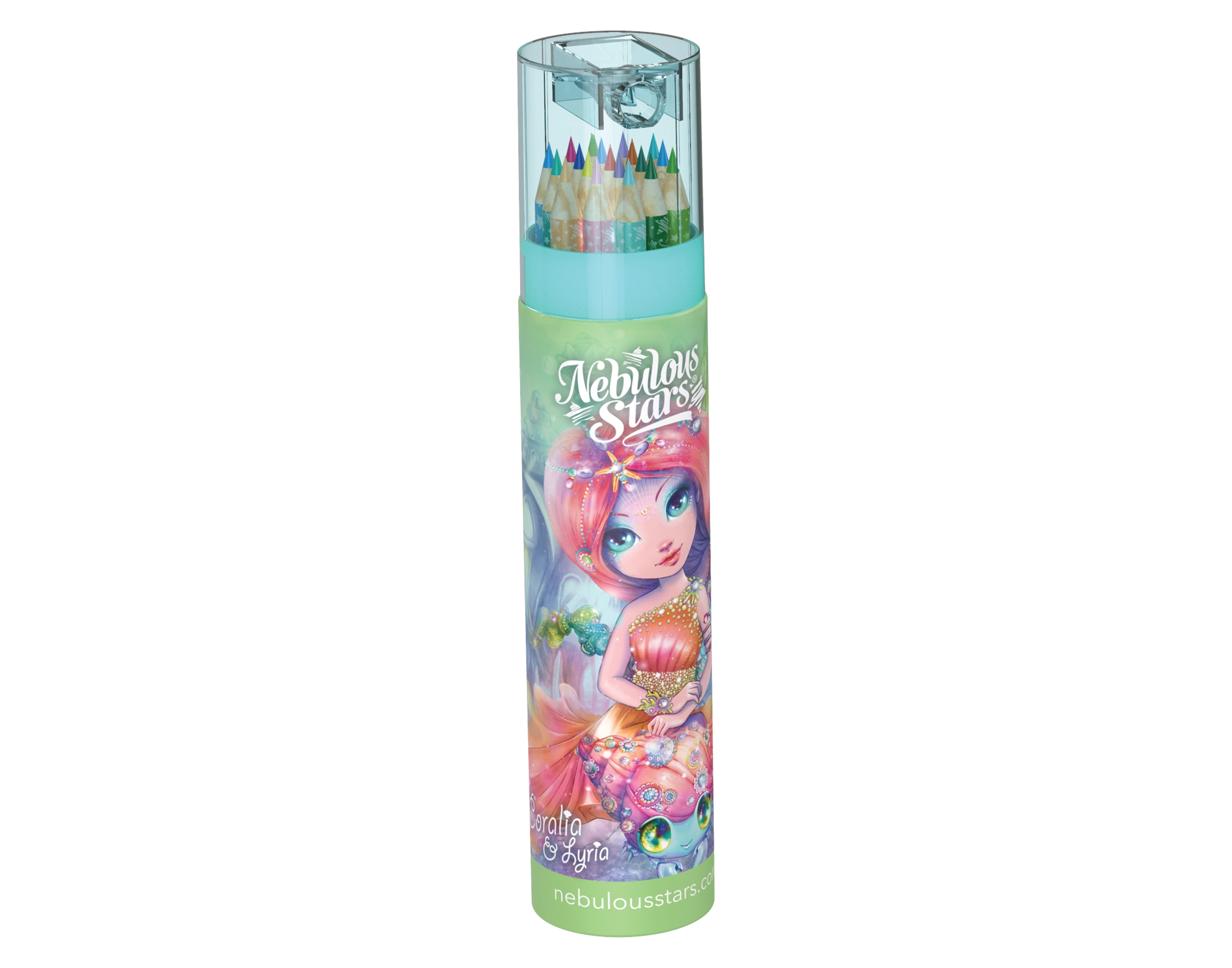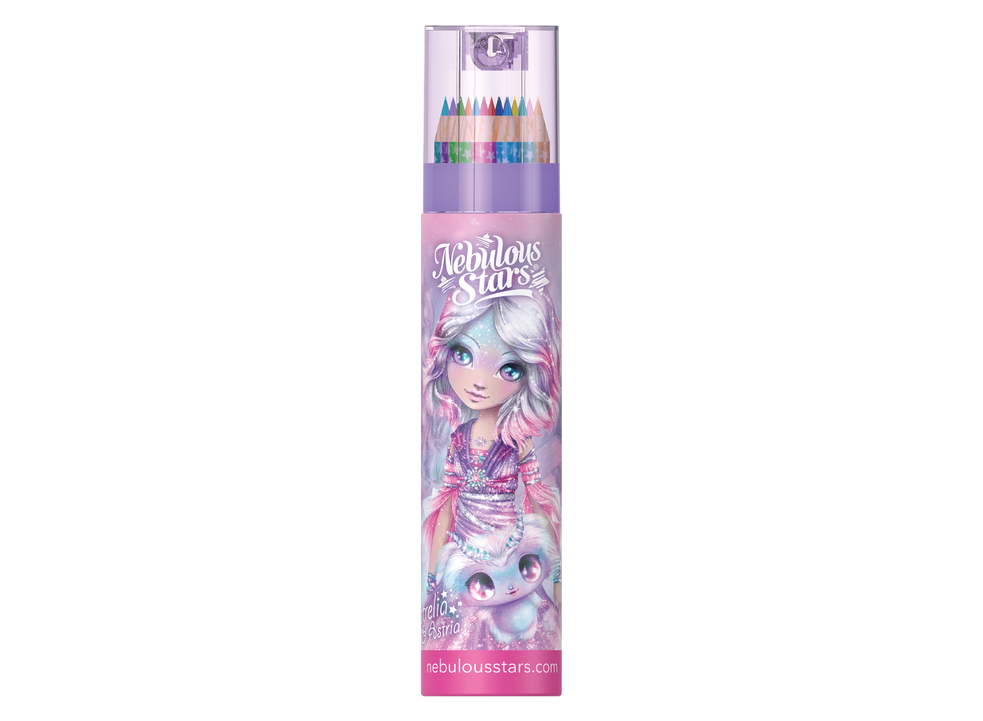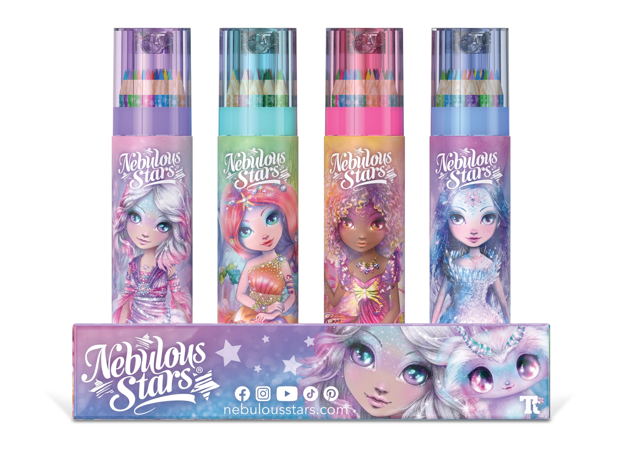 Στυλάτο σετ με 18 χρωματιστά μολύβια σε πρακτικό σωληνάριο NEBULOUS STARS, συμπληρωμένο με 1 μολύβι γραφίτη και ενσωματωμένη ξύστρα. Χρωματικές εκδοχές σωληναρίου: μοβ, πράσινο, ροζ, μπλε.