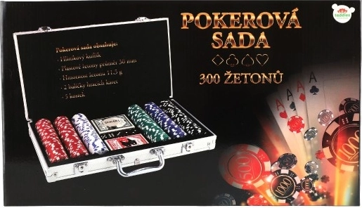 Το σετ περιλαμβάνει 300 μάρκες σε πέντε διαφορετικά χρώματα, δύο τράπουλες και πέντε ζάρια, επιτρέποντας να παίξετε διάφορα παιχνίδια με κάρτες και ζάρια.