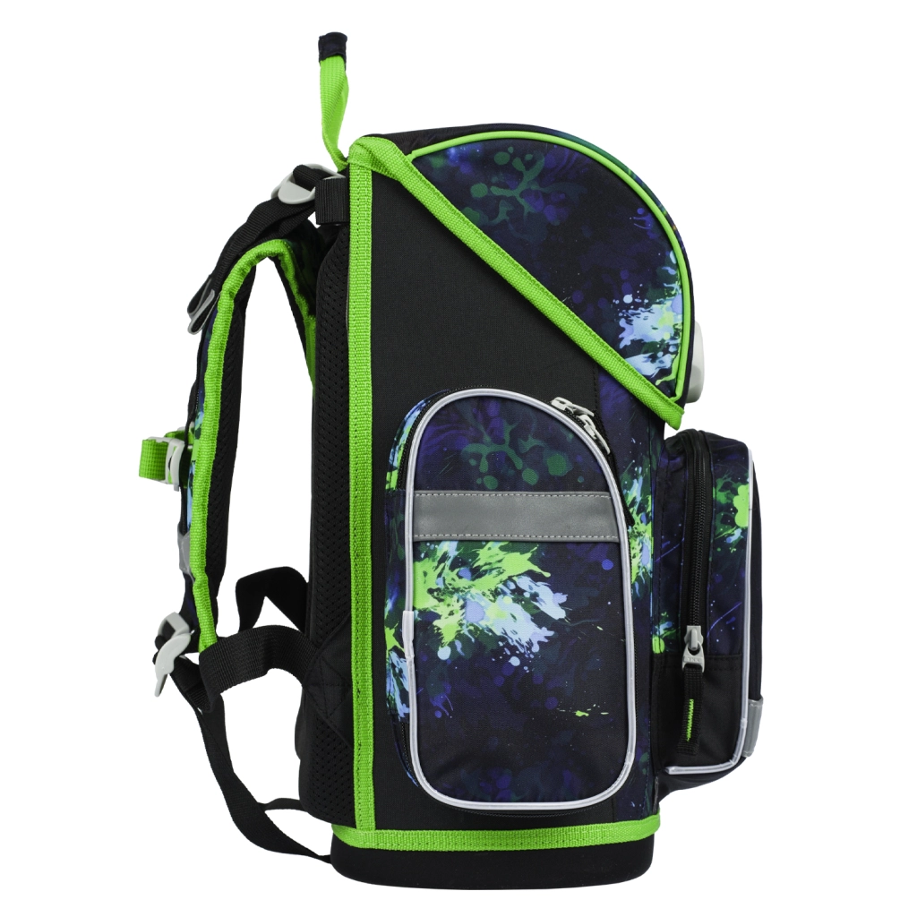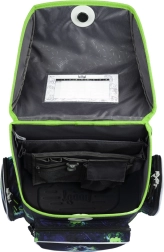 Στο εσωτερικό θα βρείτε διαφανή τσέπη με ωρολόγιο πρόγραμμα και μελετημένο διοργανωτή για ομοιόμορφη κατανομή βάρους. Δύο πλαϊνές τσέπες χωρούν παγούρι, ενώ η μονωμένη μπροστινή τσέπη διατηρεί το κολατσιό φρέσκο για περισσότερη ώρα. Η τσάντα και τα αξεσουάρ είναι από ανθεκτικό, αδιάβροχο και εύκολο στο καθάρισμα υλικό, το σετ συμπληρώνεται από μοντέρνο μπρελόκ και έντονα ανακλαστικά στοιχεία για καλύτερη ορατότητα.