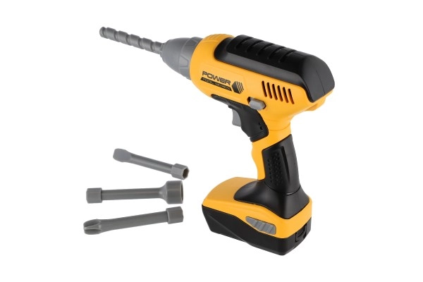 Αυτό το παιδικό ασύρματο δραπανοκατσάβιδο, σε εμβληματικό κιτρινο-μαύρο συνδυασμό, μιμείται πιστά ένα πραγματικό εργαλείο και αποτελεί εξαιρετικό σύντροφο για μικρούς βοηθούς στο εργαστήριο και στο σπίτι. Με το πάτημα της σκανδάλης η κεφαλή περιστρέφεται και το εργαλείο παράγει αυθεντικούς ήχους τρυπήματος που ενισχύουν την εμπειρία παιχνιδιού.