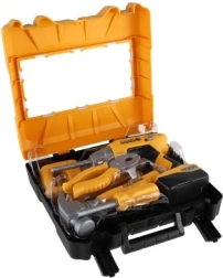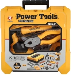 Αναπτύξτε τη δεξιοτεχνία και τη φαντασία των μικρών μαστόρων με αυτό το παιδικό σετ εργαλείων σε πρακτικό βαλιτσάκι. Περιλαμβάνει ηλεκτρικό (μπαταρίας) τρυπάνι με ηχητικά εφέ, βίδες και βασικά εργαλεία για ασφαλές παιχνίδι. Χάρη στην τροφοδοσία 3× AAA (δεν περιλαμβάνονται) το παιχνίδι είναι έτοιμο για ρεαλιστικό role-play και είναι κατάλληλο από 3 ετών.