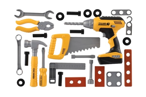 - Ηλεκτρικό τρυπάνι με ήχο, βασικά πλαστικά εργαλεία και συνδετικά μέρη (βίδες, παξιμάδια)