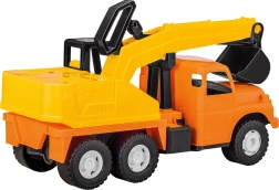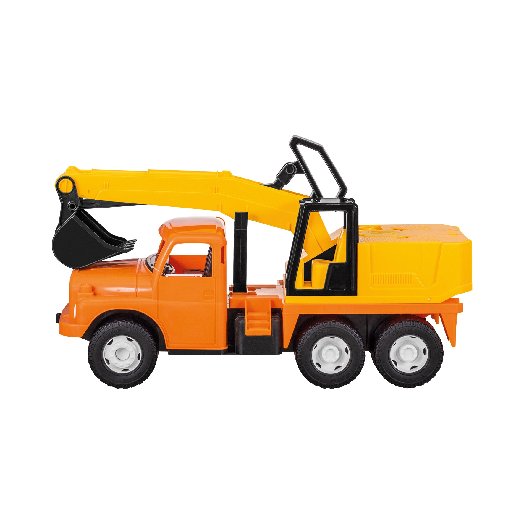 Αυτό το μοντέλο είναι κατασκευασμένο από ανθεκτικό πλαστικό, που επιτρέπει εύκολο καθάρισμα με νερό μετά από κάθε παιχνίδι σε λασπώδες έδαφος. Ο πορτοκαλοκίτρινος σχεδιασμός του εκσκαφέα είναι ελκυστικός τόσο για αγόρια όσο και για κορίτσια.