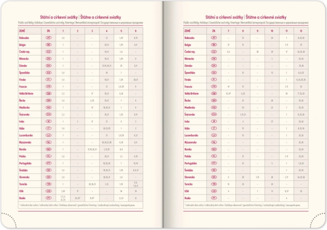 - Περιλαμβάνει εορτές της Τσεχικής και της Σλοβακικής Δημοκρατίας καθώς και διεθνείς εορτές.