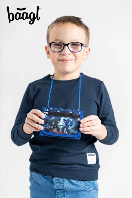 Ελαφρύ και ανθεκτικό παιδικό πορτοφόλι λαιμού με μοτίβο Robots από τη BAAGL που κρατά όλα τα μικροαντικείμενα ασφαλή. Διαθέτει κλείσιμο με Velcro για γρήγορο σφράγισμα, μικρή τσέπη με φερμουάρ για κέρματα και κορδόνι λαιμού για άνετη μεταφορά, ώστε χρήματα, κλειδιά και κάρτες να είναι πάντα πρόχειρα.