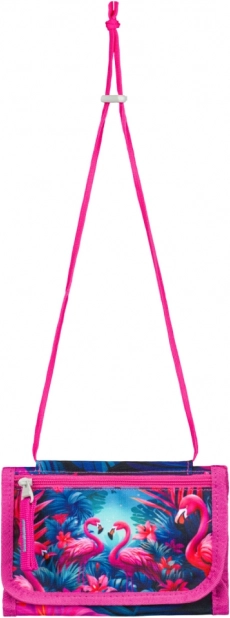 Αυτό το πολύχρωμο πορτοφόλι με τροπικό μοτίβο φλαμίνγκο συνδυάζει παιχνιδιάρικο σχεδιασμό και πρακτική διαρρύθμιση. Χάρη στο κορδόνι λαιμού θα έχετε πάντα με ασφάλεια μαζί σας χρήματα και έγγραφα – ιδανικό για εκδρομές, σχολείο και δραστηριότητες.
