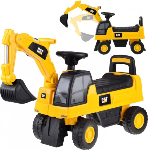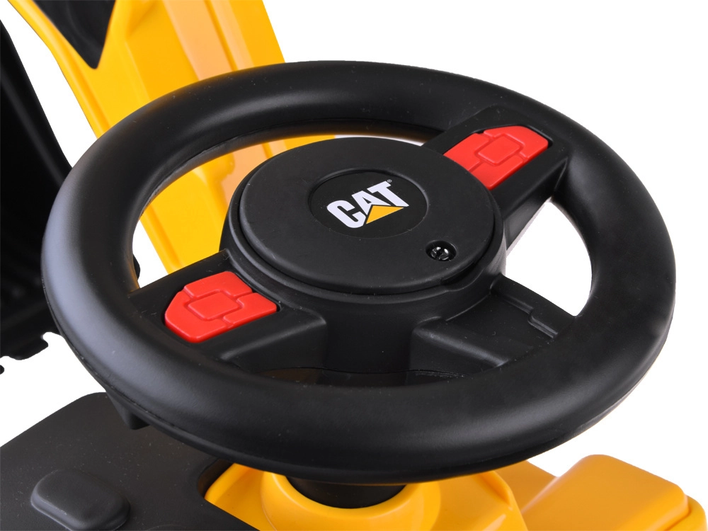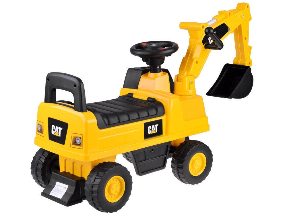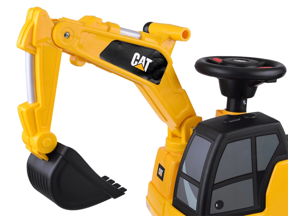 Αδειοδοτημένο ποδηλατάκι ώθησης εκσκαφέας CAT για παιδιά 1–3 ετών, προσφέρει κινητό κάδο που ελέγχεται πάνω, κάτω και πλευρικά, κόρνα στο τιμόνι και αποθηκευτικό χώρο κάτω από το κάθισμα. Χάρη στους φαρδύς αντιολισθητικούς τροχούς, την πλάτη στήριξης και την προστατευτική ασφάλιση κατά της ανατροπής, οι μικροί οδηγοί απολαμβάνουν ασφαλή και διασκεδαστική βόλτα μέσα και έξω.