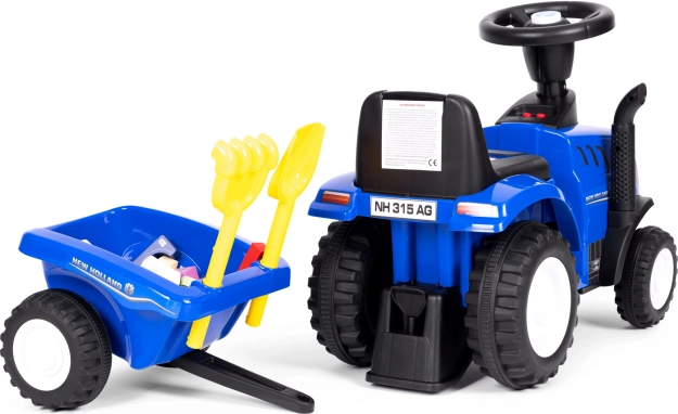 Παιδικό ποδηλατάκι-τρακτέρ με ρυμουλκούμενο, διαδραστικό τιμόνι και ήχους NEW HOLLAND