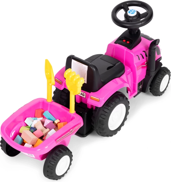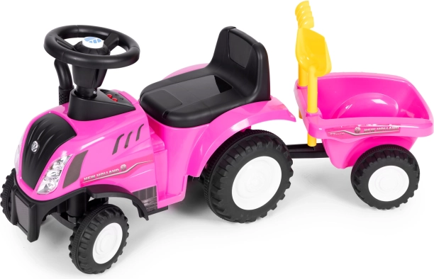 Στυλάτο παιδικό ποδηλατάκι-τρακτέρ με αποσπώμενο ρυμουλκούμενο που προσφέρει ώρες ενεργής διασκέδασης στο σπίτι και έξω. Χάρη στην άδεια NEW HOLLAND, το διαδραστικό τιμόνι με ήχους κόρνας και εκκίνησης κινητήρα και την σταθερή, ανθεκτική κατασκευή, είναι ιδανικό για μικρούς αγρότες από 12 μηνών. Περιλαμβάνει τσαπάκι και φτυαράκι, άνετο κάθισμα με πλάτη και αντι-ανατρεπτικό στοιχείο για μέγιστη ασφάλεια.