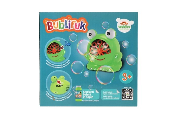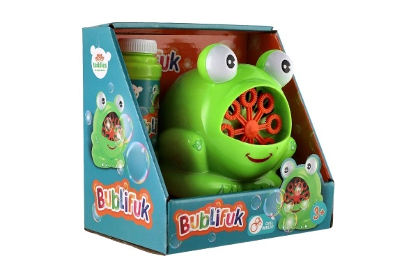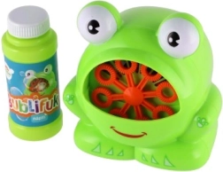 Μηχανή σαπουνόφουσκων σε σχήμα βατράχου είναι ένα διασκεδαστικό παιχνίδι για παιδιά που δημιουργεί πολλές φούσκες για να τα διασκεδάζει για ώρες. Περιλαμβάνει υγρό για άμεση χρήση.