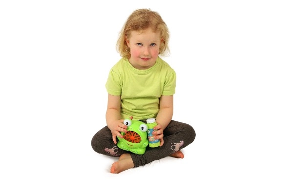 Αυτή η μηχανή σαπουνόφουσκων σε σχήμα βατράχου είναι εύκολη στη χρήση – απλώς πατήστε το διακόπτη και παρακολουθήστε τον αέρα να γεμίζει με φούσκες. Χάρη στις compact διαστάσεις της είναι εύκολα μεταφερόμενη και ιδανική για χρήση στο σπίτι ή στον κήπο.