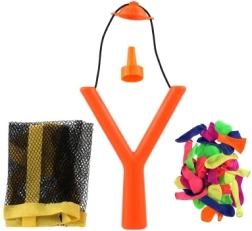 Ετοιμαστείτε για αξέχαστες υδάτινες μάχες με τη σφεντόνα για νερομπαλόνια. Με αυτό το σετ θα έχετε πάντα στη διάθεσή σας 36 πολύχρωμα μπαλόνια, τα οποία μπορείτε να γεμίσετε με νερό χάρη στον πρακτικό προσαρμογέα βρύσης. Το φορητό διχτάκι εξασφαλίζει ότι μπορείτε να έχετε τα μπαλόνια μαζί σας όπου κι αν βρίσκεστε στην ύπαιθρο.