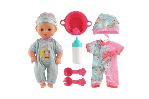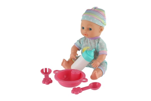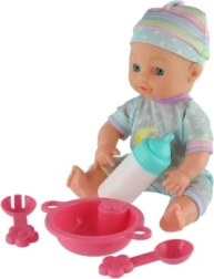 Το πακέτο περιλαμβάνει μπολ, κουταλάκι, πιρουνάκι και πολύχρωμο μπουκαλάκι, ώστε τα παιδιά να εξασκούν τη φροντίδα του μωρού και να μιμούνται το τάισμα.