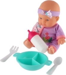 Στη συσκευασία θα βρείτε ένα πλήρες σετ φαγητού – μπουκαλάκι, μπολ, κουταλάκι και πιρουνάκι – που βοηθά τα παιδιά να εξασκήσουν τη λεπτή κινητικότητα και να μιμηθούν καθημερινές φροντιστικές ρουτίνες. Το παιχνίδι με την κούκλα αναπτύσσει την ενσυναίσθηση, την επικοινωνία και τις κοινωνικές δεξιότητες.