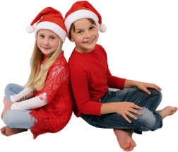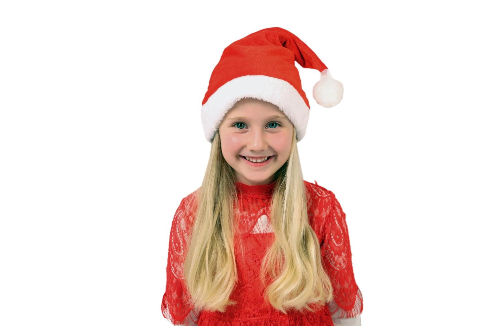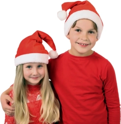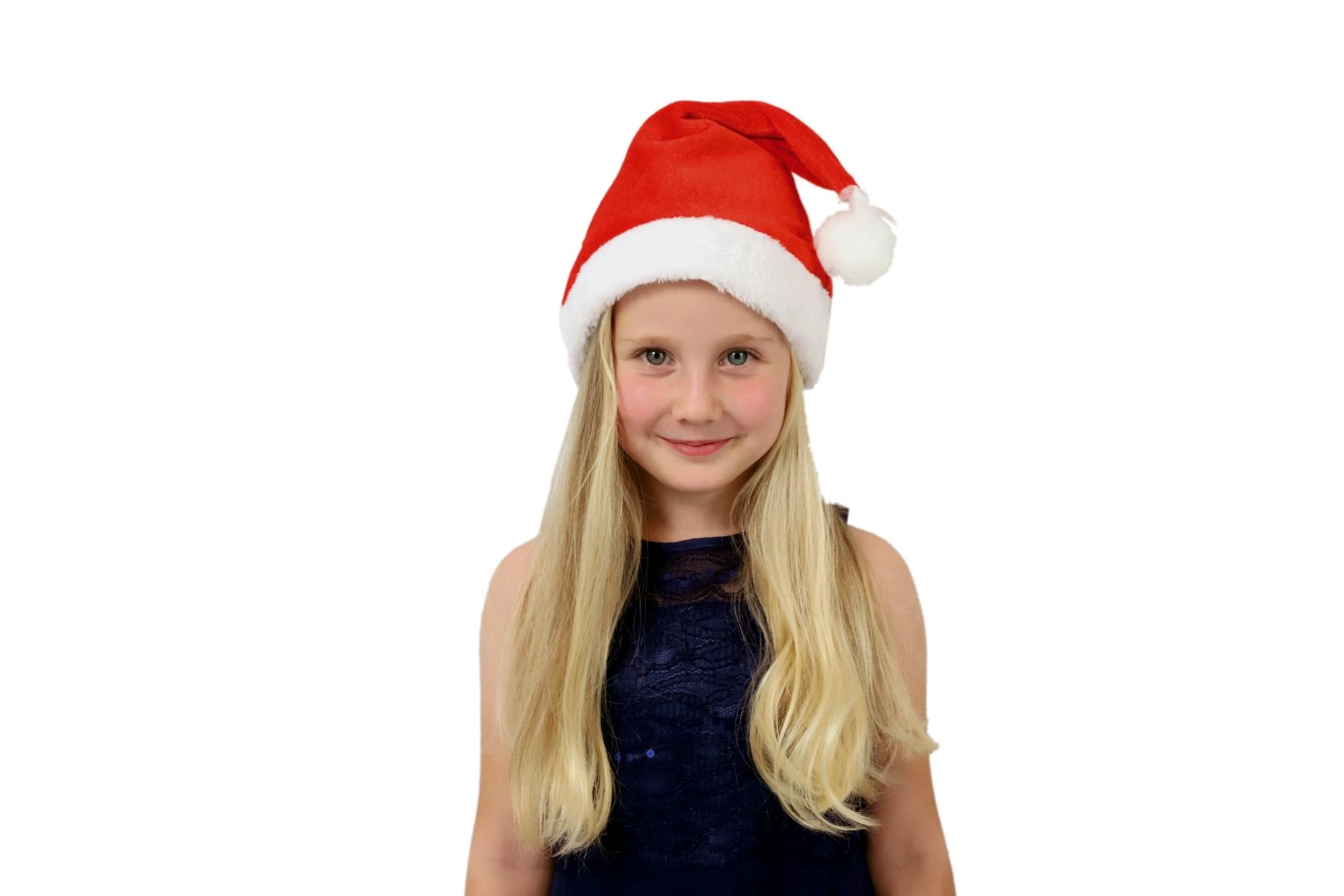 Χαριτωμένο παιδικό χριστουγεννιάτικο σκουφάκι σε κλασικό στυλ Άη Βασίλη με κόκκινο βελούδινο ύφασμα, λευκό ρεβέρ και μαλακή φουντίτσα. Ιδανικό αξεσουάρ για χριστουγεννιάτικες γιορτές, σχολικές εκδηλώσεις και οικογενειακές φωτογραφίες. Το άνετο υφασμάτινο υλικό εφαρμόζει ευχάριστα στο κεφάλι και δημιουργεί εορταστική ατμόσφαιρα σε όλη τη διάρκεια των Χριστουγέννων.