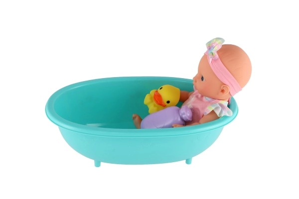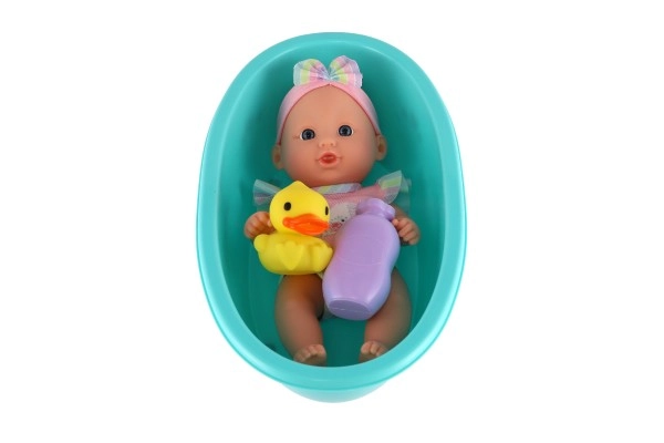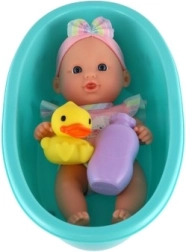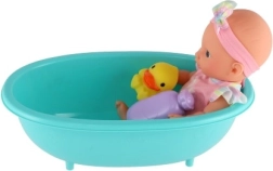 Αυτό το σετ μπάνιου με μωρό-κούκλα προσφέρει στα παιδιά ρεαλιστικό και διασκεδαστικό παιχνίδι καθημερινών ρουτινών. Η κούκλα έχει στιβαρό πλαστικό σώμα, κρατιέται καλά στο χέρι και καθαρίζεται εύκολα. Η πολύχρωμη μπανιέρα και τα αξεσουάρ όπως το λαστιχένιο παπάκι και το μπιμπερό ενισχύουν τη φαντασία και την ανάπτυξη της λεπτής κινητικότητας.