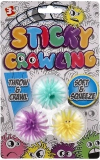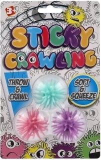 Διασκεδαστικό σετ τριών κολλωδών μπαλών που, όταν τις πετάξεις σε λεία επιφάνεια όπως τζάμι ή πλακάκια, κατεβαίνουν αργά «σκαρφαλώνοντας». Οι μπάλες είναι από σιλικονούχο υλικό, είναι μαλακές, στρεσαριστικές για ζούληγμα και χάρη στην κολλώδη επιφάνειά τους προσφέρουν άφθονη αισθητηριακή διασκέδαση. Ιδανικές για fidget και αντιστρες παιχνίδι, εύκολες στη χρήση και κατάλληλες για παιδιά από 3 ετών.