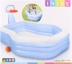 Κέντρο παιχνιδιού με ενσωματωμένη μπασκέτα και μπάλα που προσφέρει εξαιρετικό συνδυασμό υδάτινης διασκέδασης και σωματικής δραστηριότητας. Οι ευρύχωρες διαστάσεις 257 × 188 × 130 cm και ο όγκος 682 l (σε ύψος στάθμης 32 cm) εξασφαλίζουν αρκετό χώρο για παιδιά από 3 ετών.