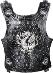 Εντυπωσιακός σχεδιασμός με σύμβολα δράκων στην πανοπλία και την ασπίδα που θα ενθουσιάσει κάθε μικρό ιππότη.