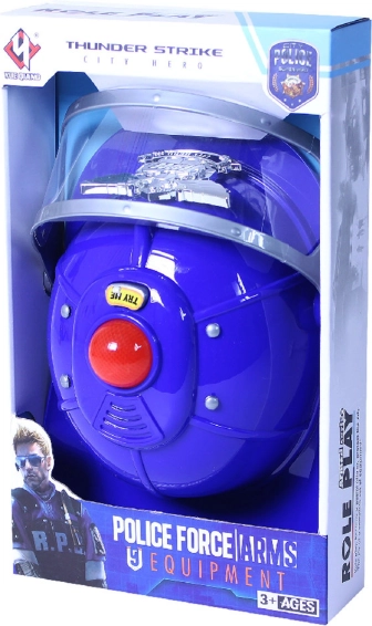 Αστυνομικό κράνος για μικρούς ήρωες με προστατευτικό κάλυμμα που αναβοσβήνει και παίζει ήχο με το πάτημα ενός κουμπιού. Ρυθμιζόμενο μέγεθος για άνετη εφαρμογή.