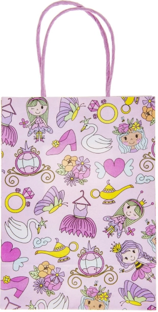 Αυτή η τσάντα δώρου με απαλό μοτίβο πριγκίπισσας θα ενθουσιάσει κάθε μικρή κοκέτα. Χάρη στις συμπαγείς διαστάσεις 16 × 22 × 9 εκ. είναι ιδανική για μικρά και μεσαία δώρα, παιχνίδια ή γλυκίσματα.