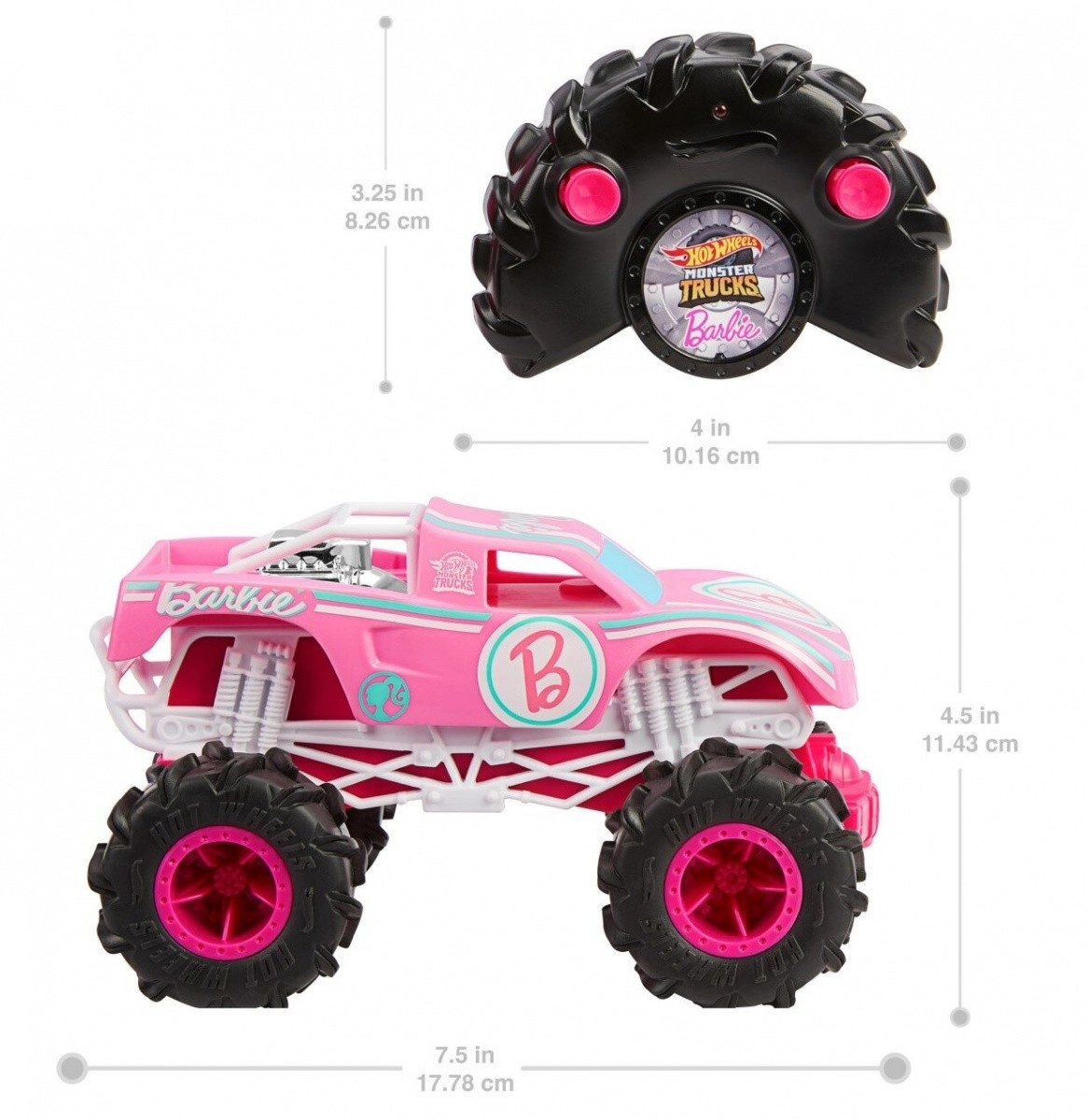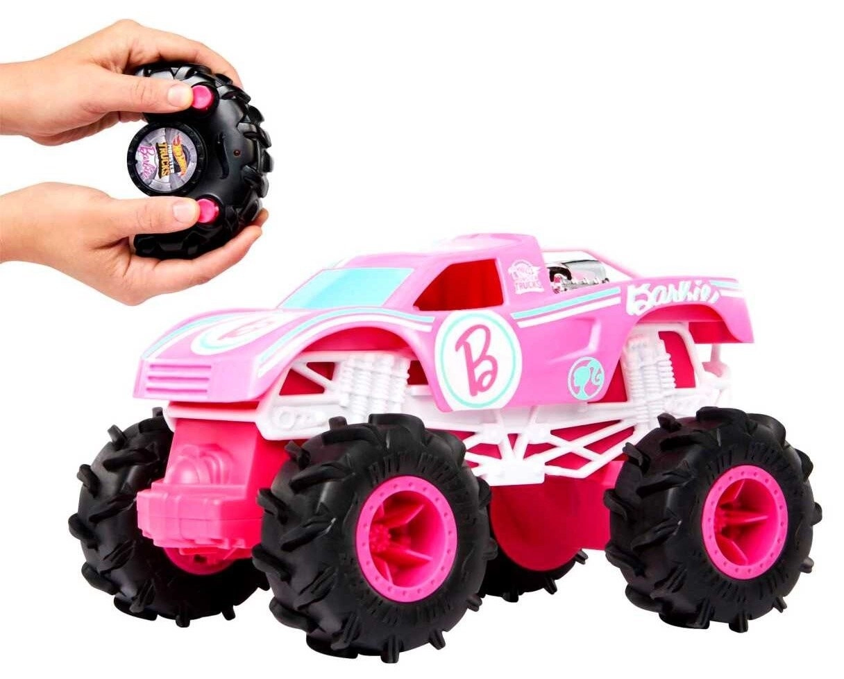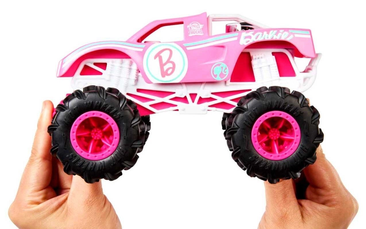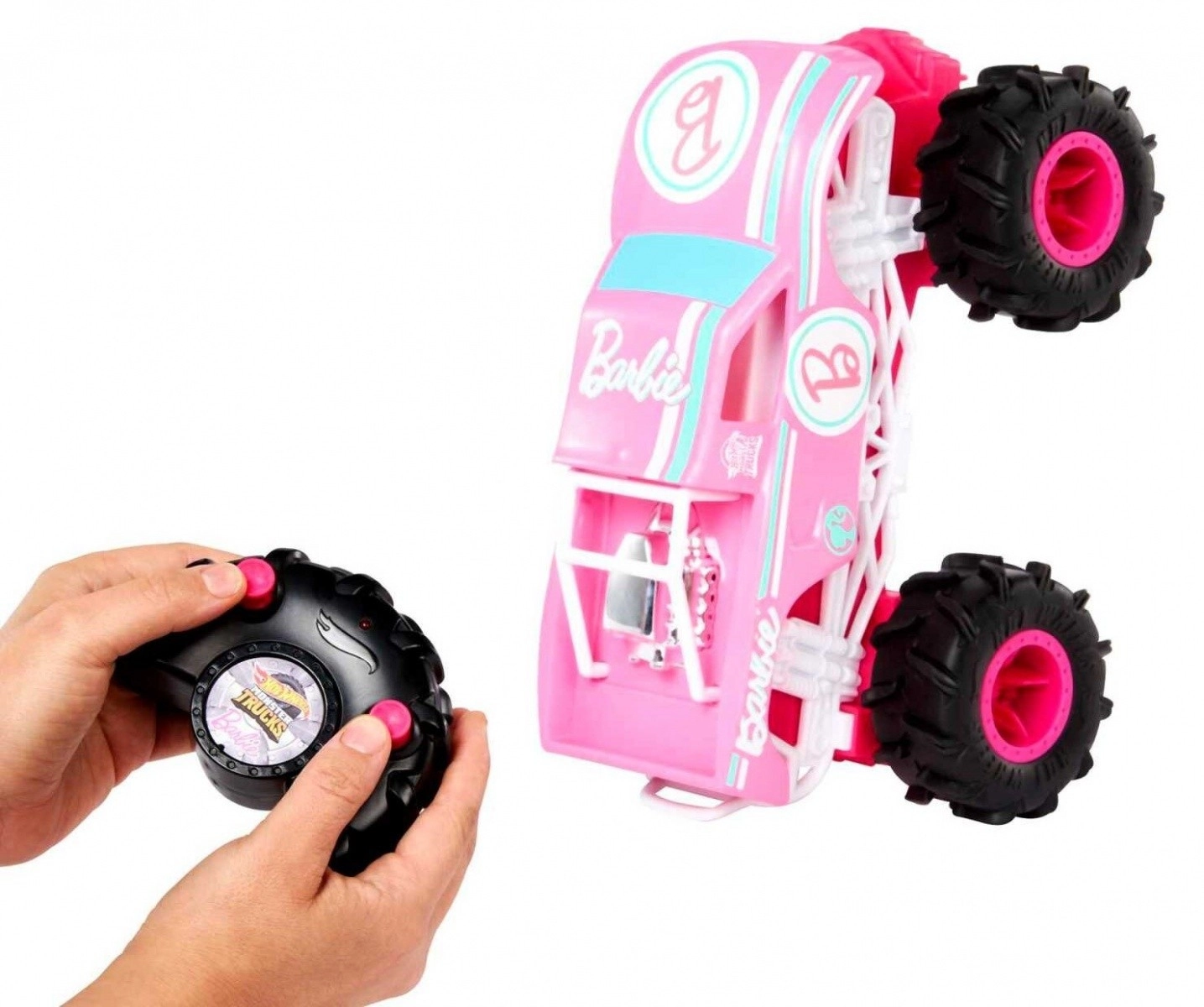 Ζήστε ακόμη περισσότερη διασκέδαση με το ροζ RC monster truck BARBIE από τη HOT WHEELS σε κλίμακα 1:24. Χάρη στα ελαστικά Terrain Action ξεπερνά εύκολα εμπόδια, κάνει σούζες και εντυπωσιακά ακροβατικά. Ο ασύρματος έλεγχος στη συχνότητα 2,4 GHz εξασφαλίζει ομαλή οδήγηση μέσα και έξω από το σπίτι.
