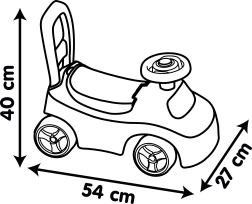 - Υποστήριξη των πρώτων βημάτων: πλάτη με λαβή για ευκολότερη καθοδήγηση.