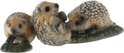 Αυτό το μικρό διακοσμητικό απεικονίζει μια μητέρα σκαντζόχοιρο με τα μικρά της πάνω σε πράσινη βάση που θυμίζει γκαζόν. Δείχνει φυσικό χάρη στις προσεγμένες λεπτομέρειες των αγκαθιών, των ρύγχων και των πατουσών. Ιδανικό για ράφι, περβάζι, γραφείο ή παιδική γωνιά.