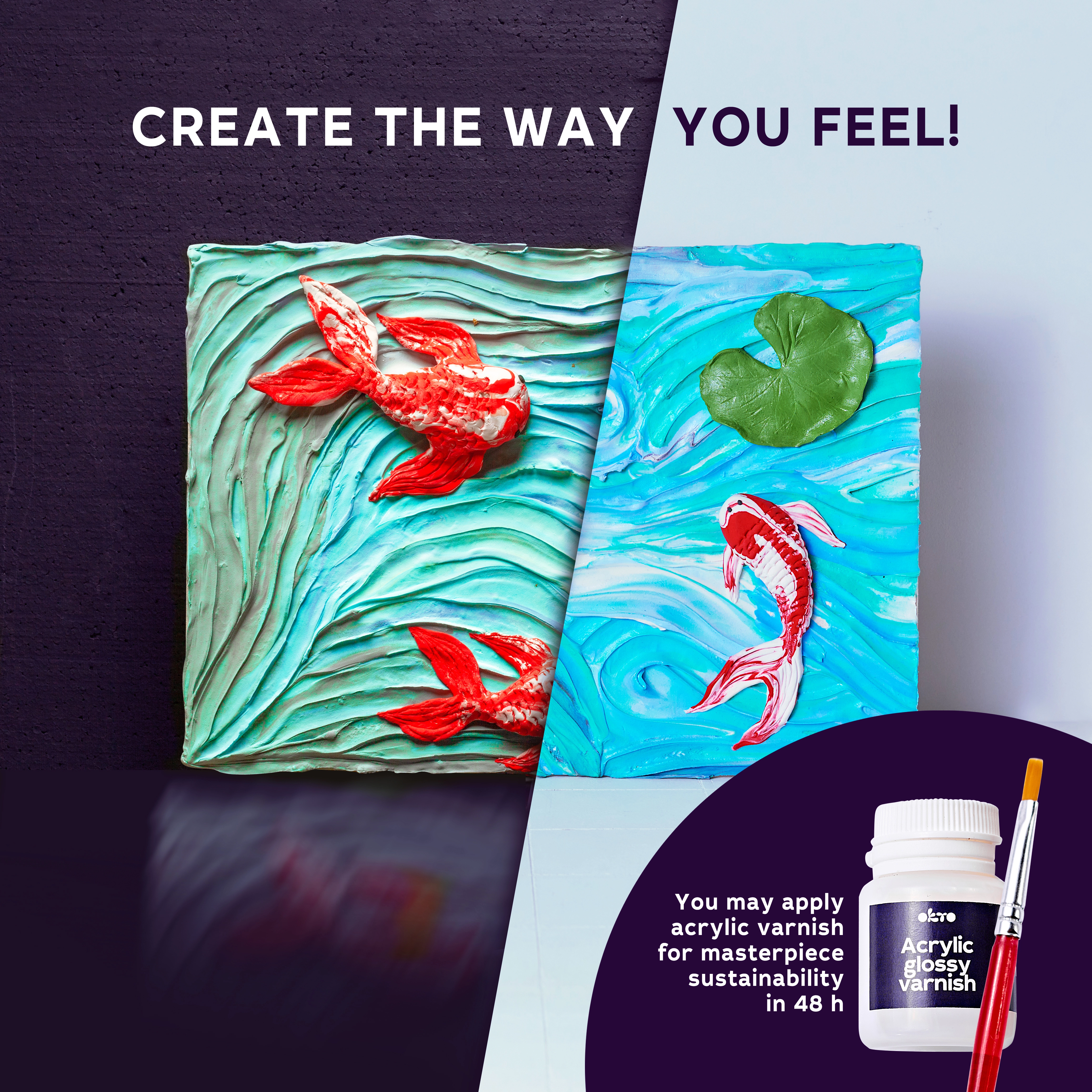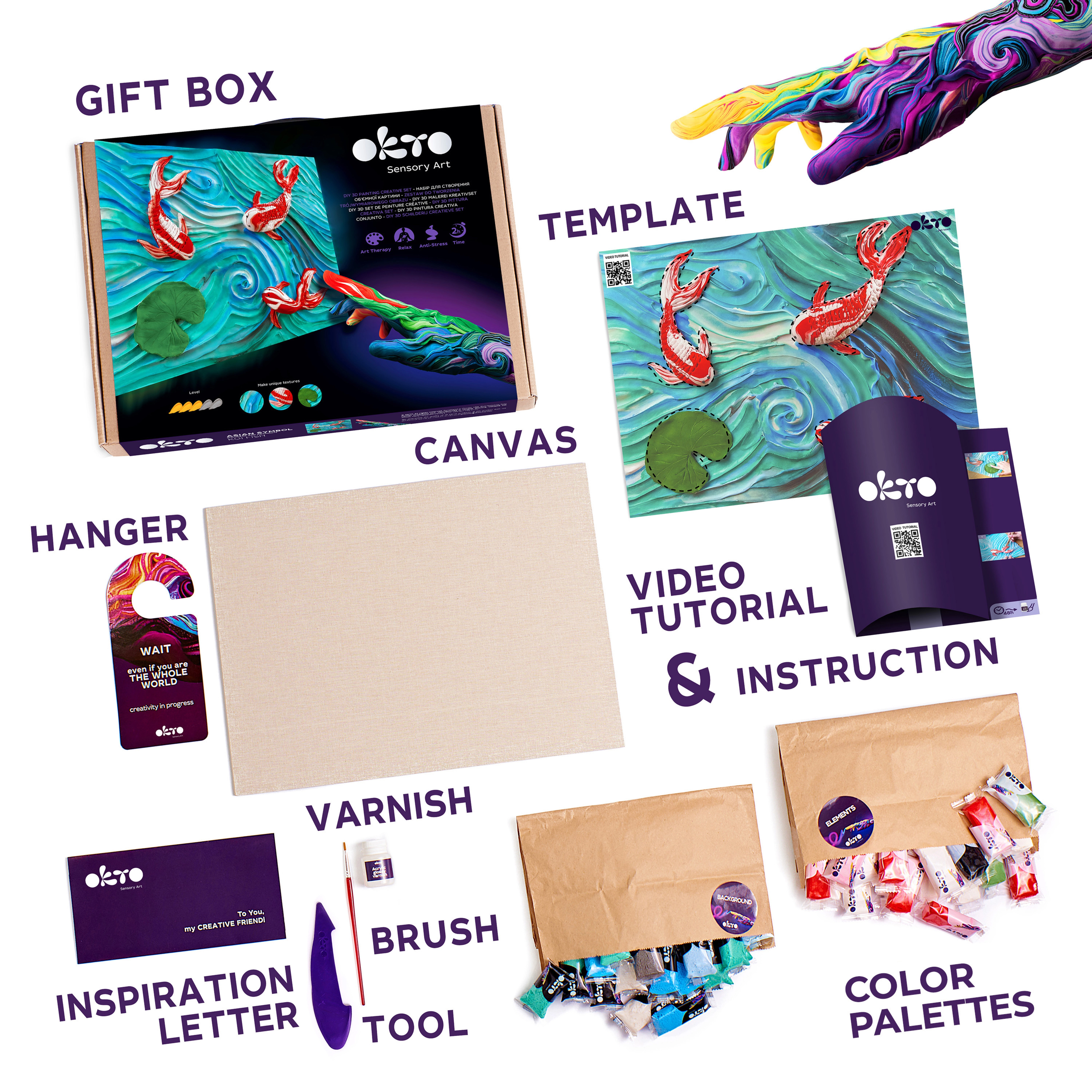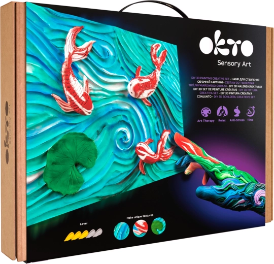 Ανακαλύψτε χαλαρωτική δημιουργία με το εικαστικό σετ Okto Sensoty Art – Κυπρίνοι koi σε μορφή 30 × 40 cm. Πλήρες πακέτο με φυσικός καμβάς, υλικά μοντελοποίησης και ακρυλικό βερνίκι υδατοδιαλυτό που σας επιτρέπει να δημιουργήσετε ένα πρωτότυπο, υφής έργο εύκολα και με χαρά.
