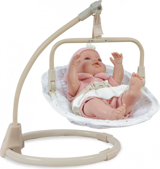 - Καρεκλάκι/κούνια με τραπεζάκι· η κούκλα και τα αξεσουάρ δεν περιλαμβάνονται