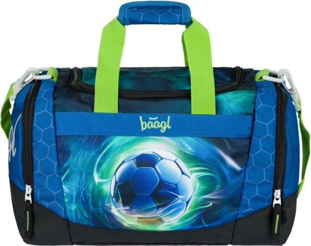 Ελαφριά και πρακτική παιδική αθλητική τσάντα BAAGL με μοτίβο ποδοσφαιρικής μπάλας, ιδανική για δραστηριότητες αλλά και ως χειραποσκευή. Προσφέρει ευρύχωρη κύρια θήκη με φαρδύ καπάκι, ξεχωριστή θήκη για παπούτσια, αποσπώμενο ρυθμιζόμενο ιμάντα και ενισχυμένο αδιάβροχο κάτω μέρος. Για την ασφάλεια των παιδιών διαθέτει ανακλαστικά στοιχεία και αξιόπιστα φερμουάρ YKK.
