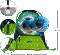 Πρακτικό αθλητικό σακουλάκι από τη Baagl για παπούτσια και δραστηριότητες ελεύθερου χρόνου με μοτίβο ποδοσφαιρικής μπάλας. Προσφέρει ανθεκτικό, πλενόμενο υλικό, σφίξιμο με κορδόνια για μεταφορά στην πλάτη, καραμπίνα για προσάρτηση στη σχολική τσάντα και κάτω τσέπη με φερμουάρ για μικροαντικείμενα.