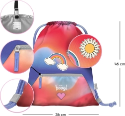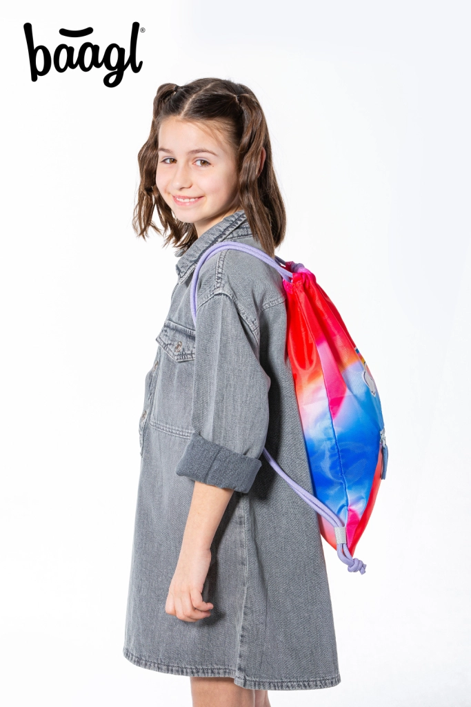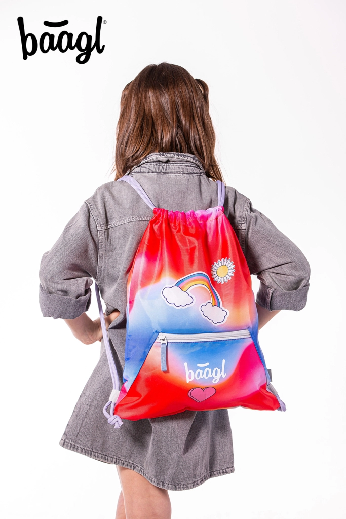 Πρακτική και στιλάτη σακούλα από τη μάρκα BAAGL για παπούτσια και δραστηριότητες ελεύθερου χρόνου, σε ελκυστικό κόκκινο σχέδιο με μοτίβο ουράνιου τόξου. Προσφέρει ανθεκτικό πλενόμενο υλικό, πρακτική τσέπη με φερμουάρ και κλείσιμο με σταθερά κορδόνια για άνετη μεταφορά στην πλάτη. Χάρη στην καραμπίνερ προσαρμόζεται εύκολα σε σχολική τσάντα ή σακίδιο.