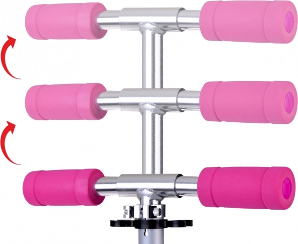 Το ύψος προσαρμόζεται εύκολα σε τρία επίπεδα (περίπου 62/77/88 cm). Οι μαλακές αφρώδεις λαβές εξασφαλίζουν σταθερό και άνετο κράτημα.