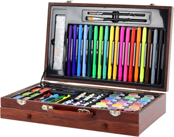 Βουτήξτε στον κόσμο της τέχνης με το καλλιτεχνικό μας σετ, που είναι ένα ιδανικό δώρο για παιδιά και ενήλικες. Αυτή η ξύλινη βαλίτσα θα σας εντυπωσιάσει: