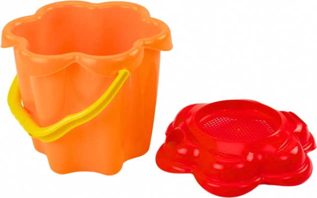 Το κουβαδάκι διαθέτει καπάκι σε σχήμα λουλουδιού που λειτουργεί ως κόσκινο για την άμμο, προσθέτοντας μια επιπλέον διάσταση στο παιχνίδι με την άμμο.