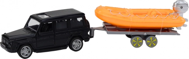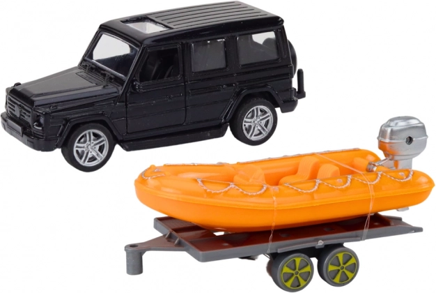 Αυτό το σετ συνδυάζει εκτός δρόμου αυτοκίνητο και ρυμουλκούμενο με σκάφος, ιδανικό για παιδιά που αγαπούν τις περιπέτειες σε κάθε επιφάνεια.