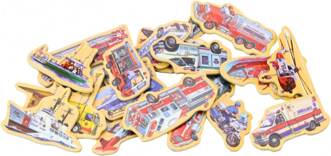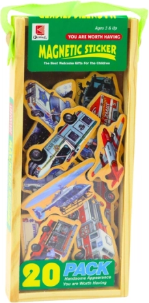 Οι μαγνήτες είναι κατασκευασμένοι από στιβαρό ξύλο, γεγονός που εξασφαλίζει την ανθεκτικότητα και την ασφάλειά τους κατά τη διάρκεια του παιχνιδιού. Χάρη στα ζωηρά χρώματα και τα ελκυστικά μοτίβα, τραβούν την προσοχή των παιδιών και ενθαρρύνουν τη δημιουργικότητά τους. Τα παιδιά μπορούν με τους μαγνήτες να δημιουργούν διάφορες σκηνές, να εξασκούν τον συντονισμό χεριού-ματιού και να αναπτύσσουν γλωσσικές δεξιότητες ονομάζοντας τα επιμέρους οχήματα.