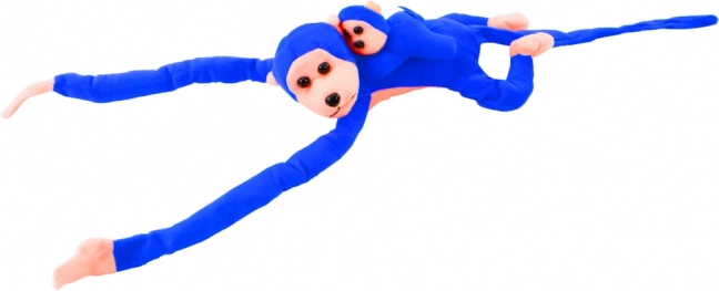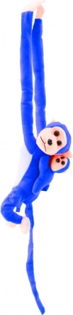 Χαριτωμένη λούτρινη μαϊμού με μωράκι σε έντονο μπλε χρώμα, ιδανικός σύντροφος για παιδιά. Διαθέτει μαλακή και απαλή υφή, μακριά άκρα με ταινίες βέλκρο για στερέωση στο χερούλι ή στην κούνια και μήκος 70 cm, που προσκαλεί σε αγκαλιές και παιχνίδι.
