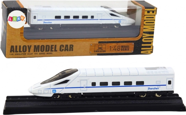 Το μοντέλο τρένου σε κλασικό λευκό χρώμα τραβά τα βλέμματα και προσδίδει κομψότητα σε κάθε συλλογή. Κατασκευασμένο από ανθεκτικό μέταλλο, εξασφαλίζει μεγάλη αντοχή και ρεαλιστική εμφάνιση. Με προσεγμένες αναλογίες στην κλίμακα 1:48, μοιάζει με πραγματικό τρένο σε μινιατούρα. Επιμελημένα στοιχεία, όπως παράθυρα, πόρτες και άλλες λεπτομέρειες, καθιστούν αυτό το μοντέλο ξεχωριστό. Είναι ένα αναντικατάστατο κομμάτι για κάθε συλλογή μοντέλων τρένων και σίγουρα θα αποτελέσει το κεντρικό της σημείο.