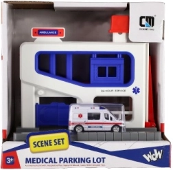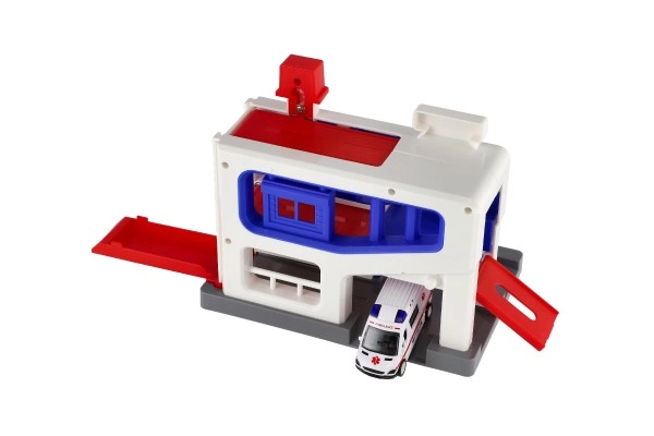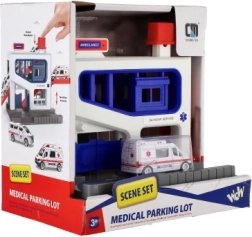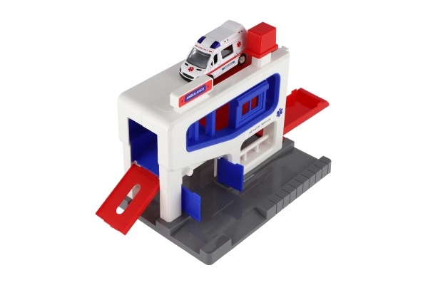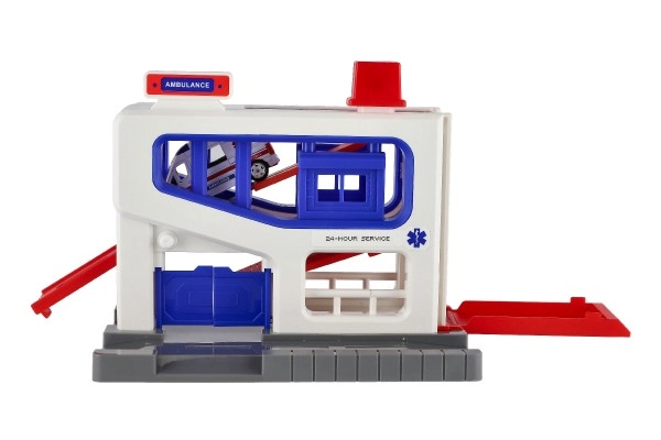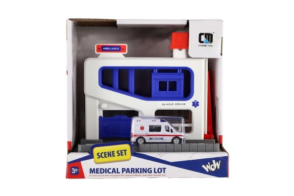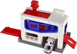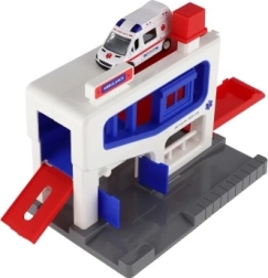 Αυτό το γκαράζ στάθμευσης είναι ένα ιδανικό σετ παιχνιδιού για παιδιά ηλικίας από 3 ετών. Το σετ περιλαμβάνει πλαστικό γκαράζ και αυτοκινητάκι ασθενοφόρου, ιδανικό για παιχνίδι και μάθηση. Έτσι τα παιδιά μπορούν να αναπτύξουν τις κινητικές τους δεξιότητες και την κατανόηση της εργασίας διάσωσης.