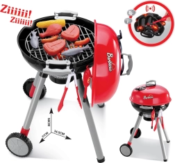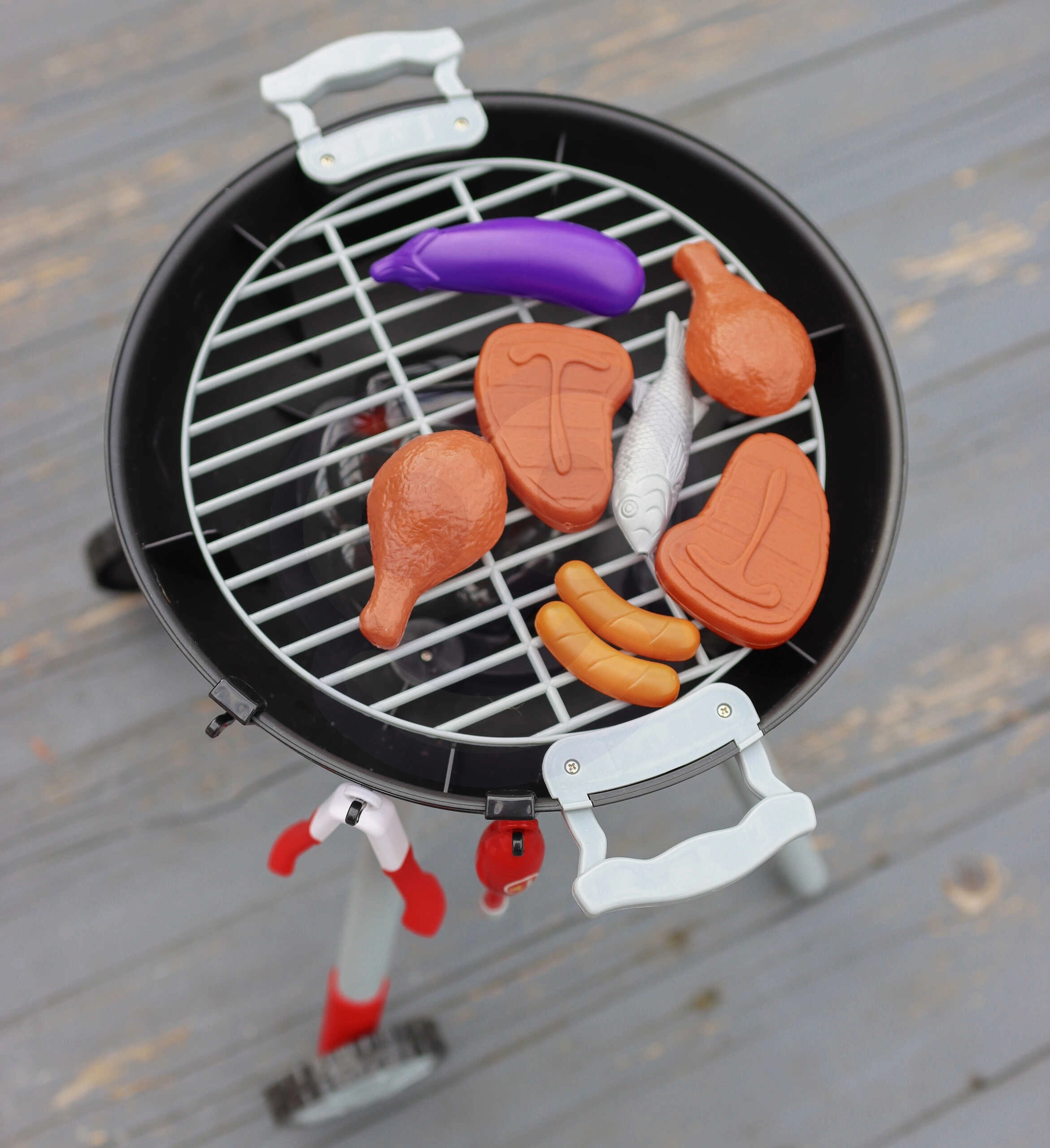 Το σετ περιλαμβάνει ό,τι χρειάζεται για να μιμηθείτε ένα οικογενειακό BBQ: σχισμές στη σχάρα, πλούσια επιλογή από πλαστικά τρόφιμα (λουκάνικα, μπριζόλες, κοτόπουλο, ψάρια, καλαμπόκι, μελιτζάνα), σκεύη, πιατάκια, ποτηράκια και ακόμη και μύλο πιπεριού. Το αποσπώμενο καπάκι προστατεύει τη σχάρα μετά το «ψήσιμο» και χάρη στους τροχούς και τη λαβή τα παιδιά μετακινούν εύκολα την ψησταριά στη βεράντα ή στο παιδικό δωμάτιο.
