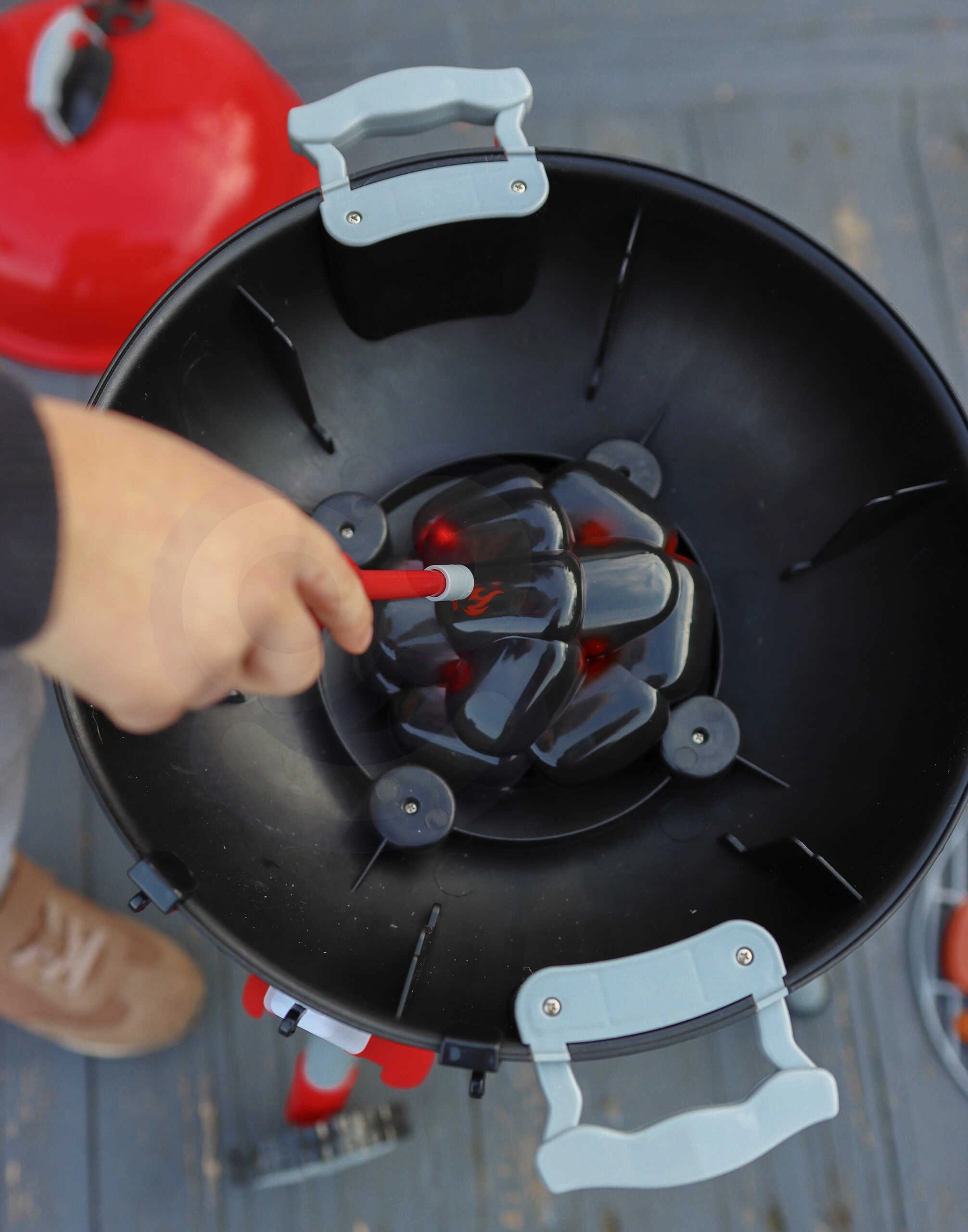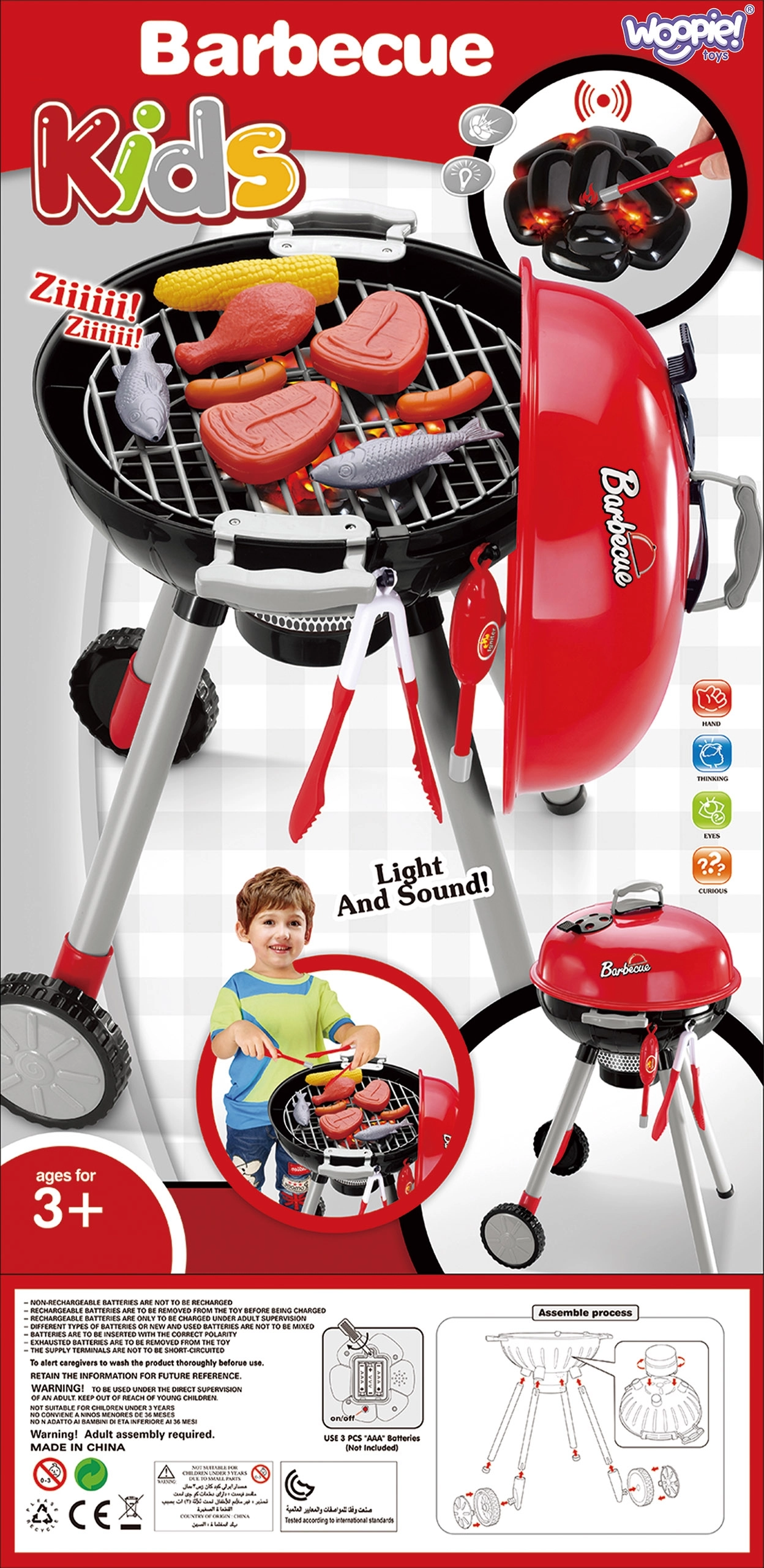 Η παιδική ψησταριά WOOPIE φαίνεται και λειτουργεί σαν πραγματική. Αρκεί να πλησιάσετε τον αναπτήρα στα κάρβουνα για να ενεργοποιηθούν τα ρεαλιστικά φωτεινά και ηχητικά εφέ που μιμούνται το άναμμα. Τα κόκκινα πυρακτωμένα κάρβουνα και ο χαρακτηριστικός ήχος θα ενθουσιάσουν όλους τους μικρούς λάτρεις της μαγειρικής.