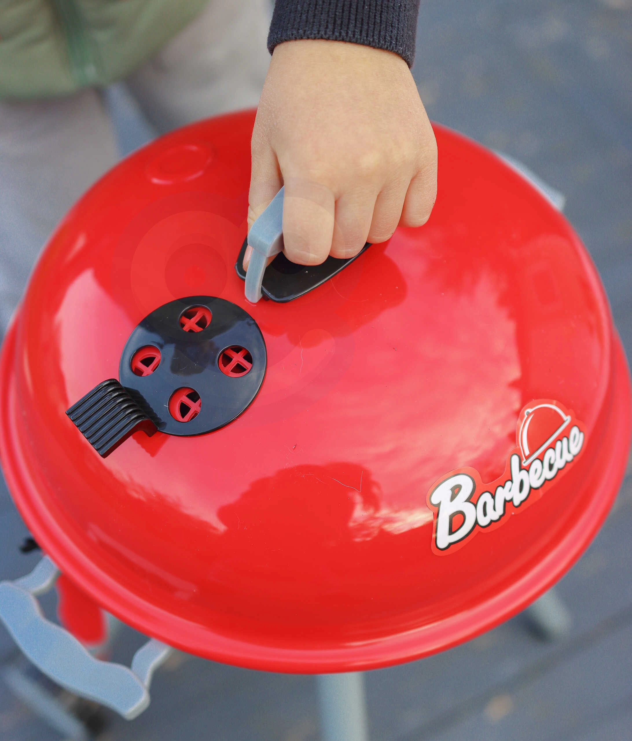 Το αποσπώμενο καπάκι προστατεύει τη σχάρα, ενώ οι τροχοί και η λαβή διευκολύνουν τη μετακίνηση μέσα στο σπίτι και στον κήπο. Η στιβαρή κατασκευή αντέχει το καθημερινό παιχνίδι.