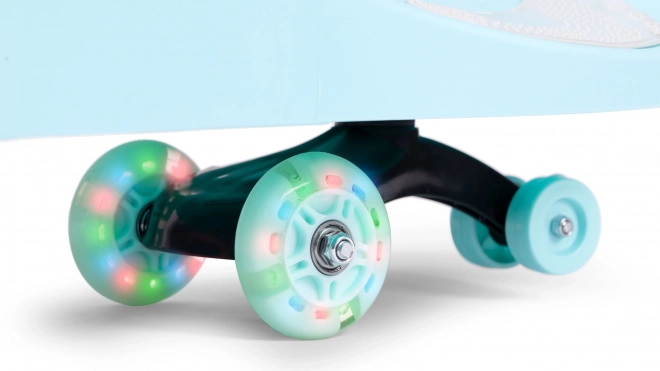 Οι λαστιχένιοι τροχοί εξασφαλίζουν ομαλή και αθόρυβη κίνηση και παράλληλα δεν γρατζουνίζουν το πάτωμα. Οι μπροστινοί τροχοί φωτίζονται κατά την κίνηση χάρη στις LED διόδους, ώστε τα παιδιά να είναι πιο ορατά στο σούρουπο και η οδήγηση να είναι ακόμα πιο διασκεδαστική. Η εργονομικά σχηματισμένη σέλα και οι αντιολισθητικές επιφάνειες για τα πόδια αυξάνουν την άνεση και την ασφάλεια.