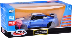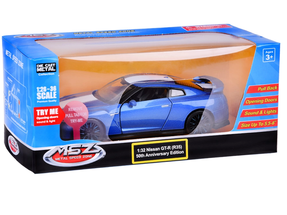 Ανακαλύψτε το εμβληματικό NISSAN GT‑R σε κομψό μπλε χρώμα ως ποιοτικό μοντέλο die‑cast 1:32. Η μεταλλική καροσερί, τα λάστιχα από καουτσούκ και το πλαστικό σασί προσδίδουν στο αυτοκίνητο ρεαλιστική εμφάνιση και αντοχή στο παιχνίδι. Χάρη στον μηχανισμό Friction power αρκεί να τραβήξετε το αυτοκινητάκι σε λεία επιφάνεια και να το αφήσετε.