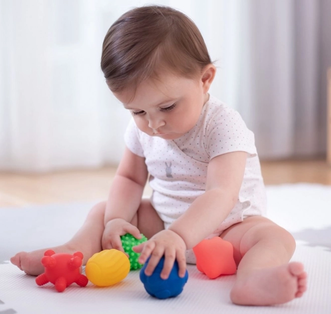 Κάθε μπάλα έχει μοναδική επιφάνεια που διεγείρει την αφή και παρακινεί τα παιδιά να εξερευνούν, να πιέζουν και να πιάνουν.