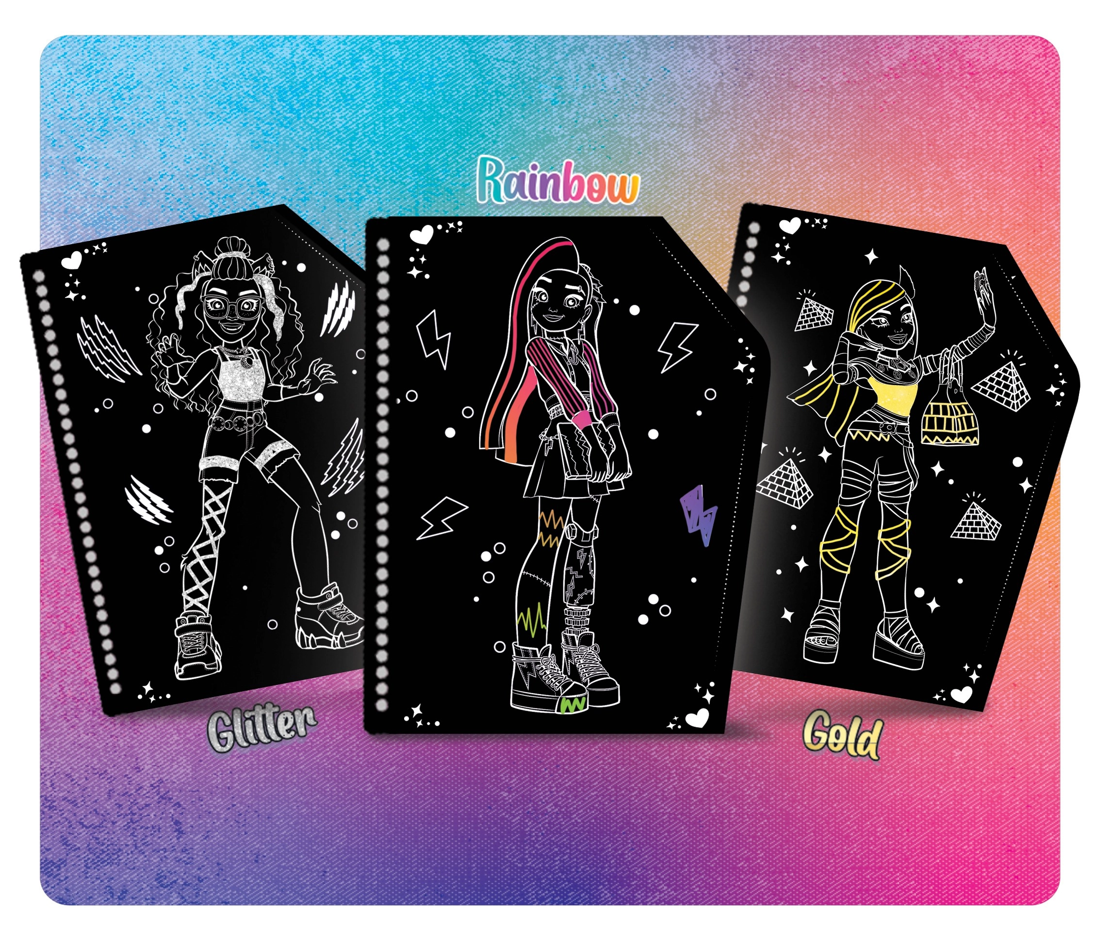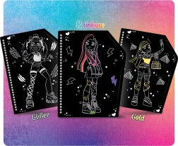 Εισέλθετε στον μαγικό κόσμο του Monster High και δημιουργήστε με το ξυστό σκίτσο, όπου μετά το ξύσιμο της μαύρης στρώσης αποκαλύπτονται χρυσοί, λαμπεροί και ιριδίζοντες εφέ. Το σκίτσο προσφέρει 44 σελίδες γεμάτες δημιουργική διασκέδαση.