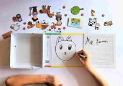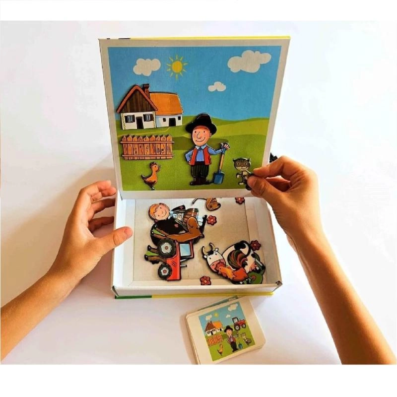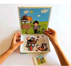 Αυτό το έξυπνο σετ συνδυάζει γράψιμο, σβήσιμο και σύνθεση μαγνητικών εικόνων σε ένα συμπαγές παιχνίδι. Τα παιδιά μπορούν να εξασκούν γράμματα και αριθμούς, να ζωγραφίζουν με μαρκαδόρο που σβήνει και να δημιουργούν τις δικές τους σκηνές από τη φάρμα. Χάρη στους μαγνήτες, τα επιμέρους κομμάτια κρατούν σταθερά στην επιφάνεια, κάτι που το καθιστά ιδανική διασκέδαση για το αυτοκίνητο και για το σπίτι.