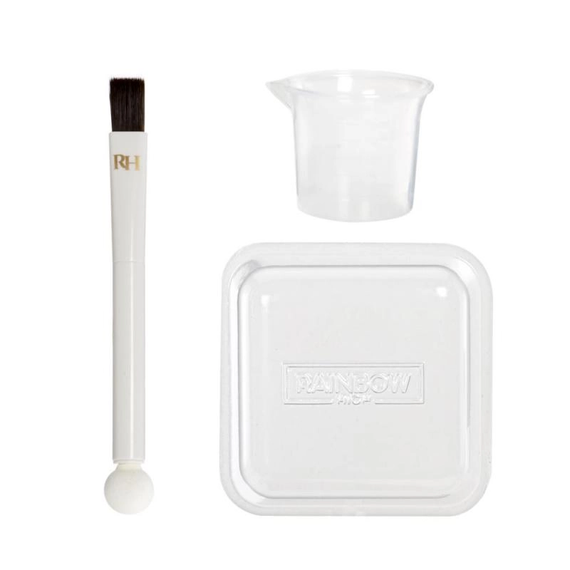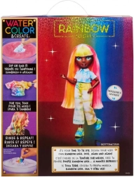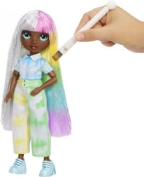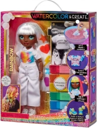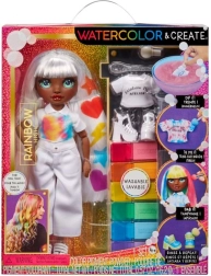 Ανακάλυψε τον κόσμο των χρωμάτων με την δημιουργική κούκλα RAINBOW HIGH Watercolor & Create. Ρίξε τη σκόνη στο νερό, βούτα τα μαλλιά ή το outfit και με τη βοήθεια του σφουγγαριού δημιούργησε πρωτότυπα μοτίβα. Χρησιμοποίησε τα λαστιχάκια για tie-dye και φτιάξε ένα μοναδικό streetwear look. Τα χρώματα είναι ξεπλενόμενα, ώστε να αλλάζεις στιλ ξανά και ξανά.